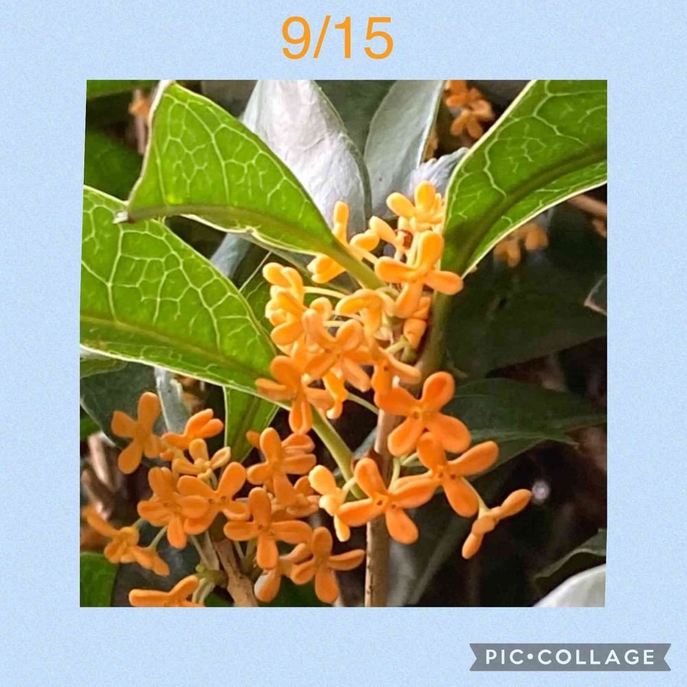 今朝庭の隅っこにあるキンモクセイを見に行ったら