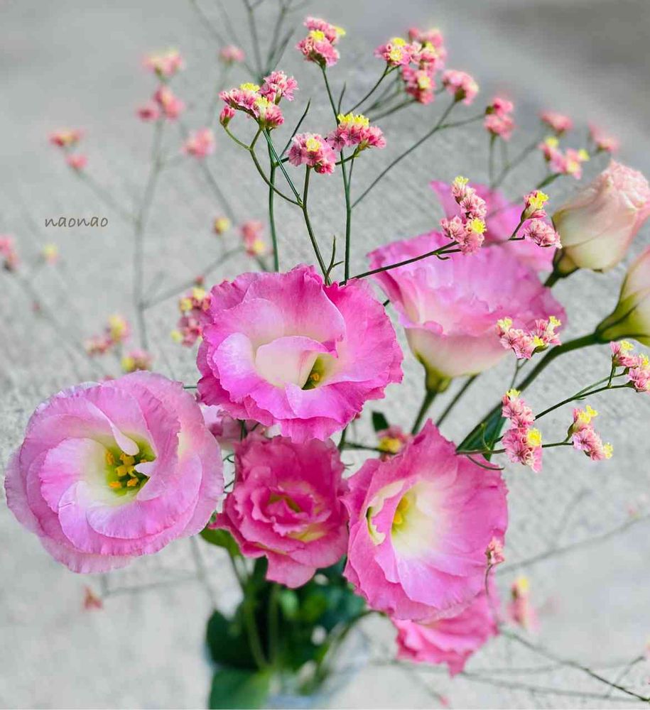 先日買った切り花のトルコ桔梗とピンクと黄色の混ざったスターチス🌸