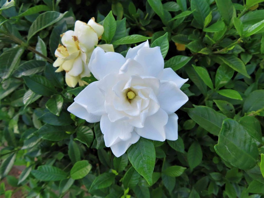 バラのように綺麗に咲いた「クチナシ(八重)」に出会えました。 パチリ