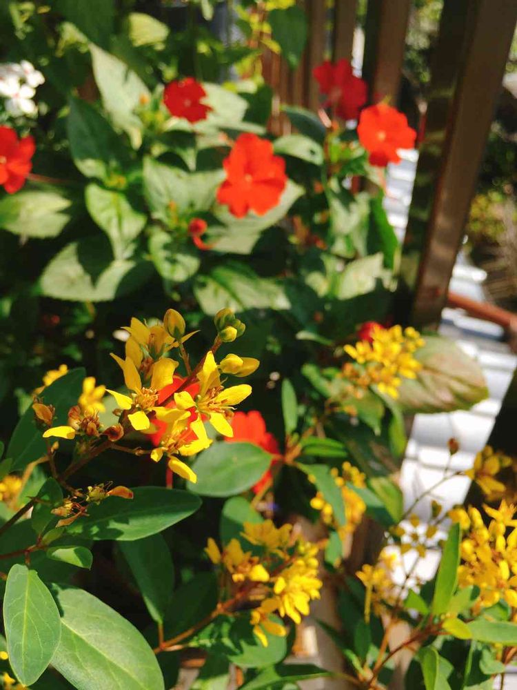 コウシュンカズラとサンパチェンスがビビット。残暑の中でもひときわ眩しい✨