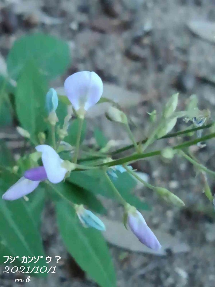 道路沿いに枝を倒す様にしてハギに似た小さな花が咲いていました💜