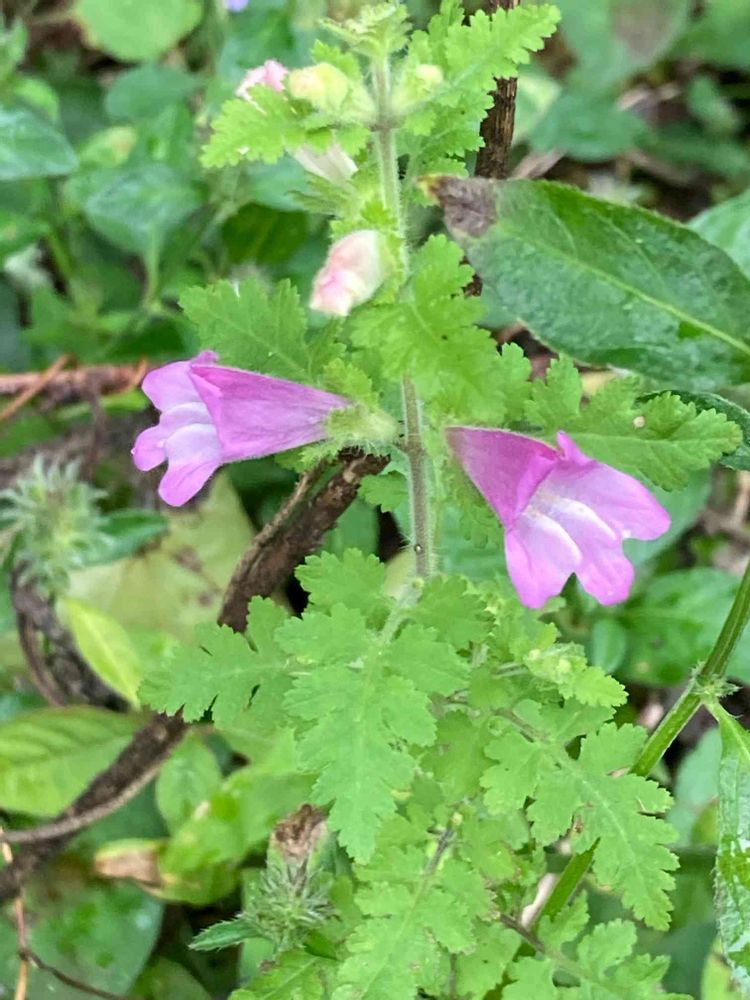地面にハイハイしてるトキワハゼを撮影してたら急に立ち上がってきた⁉️よく見ると違う花でした。コシオガマ初めましてです。高さ30センチぐらいで可愛い花です。最近投稿されてる花友さんがいたので名前がわかりました。