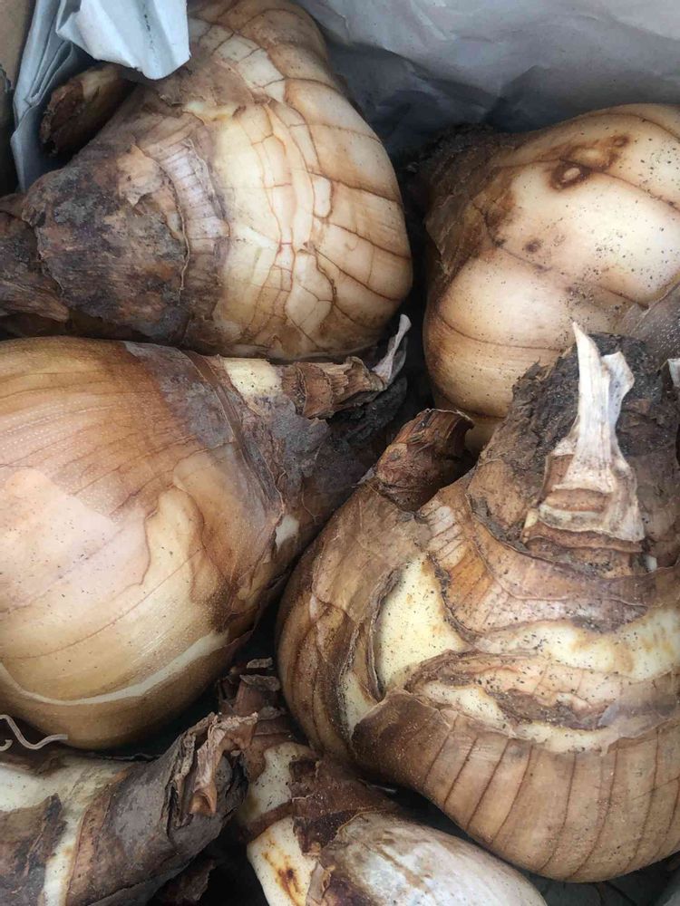 ぷりぷりのラッパ水仙を植え付けました‼️こんなに大きな水仙の球根見た事なかったです😊
