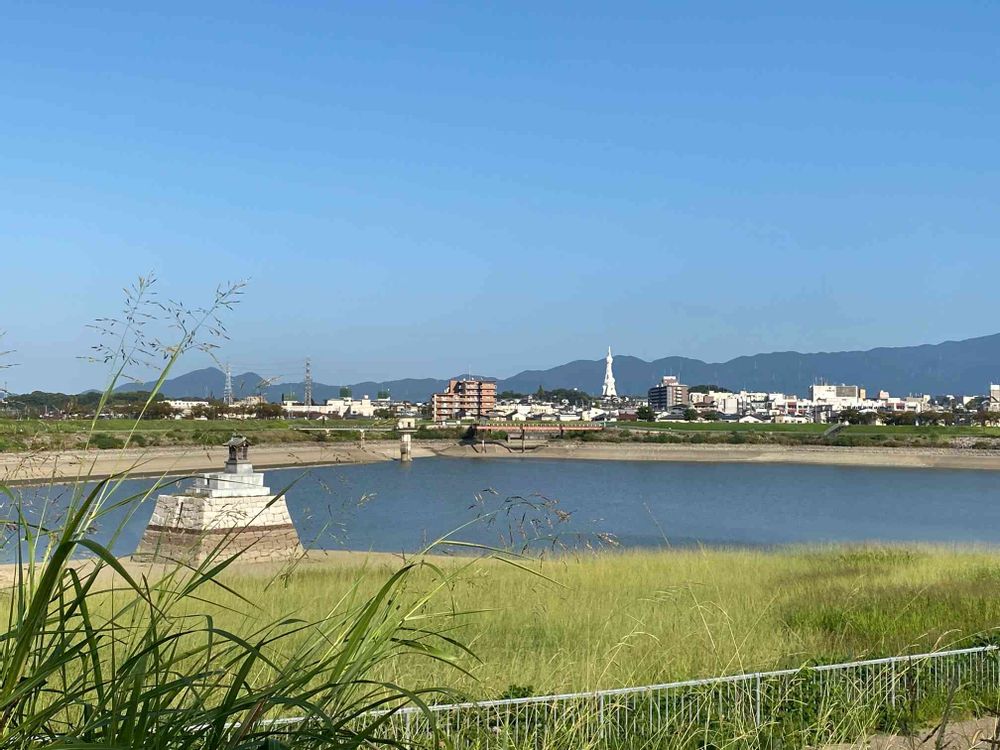 池の向こうにはPLの塔が。来年は花火🎆見たいなぁ👁