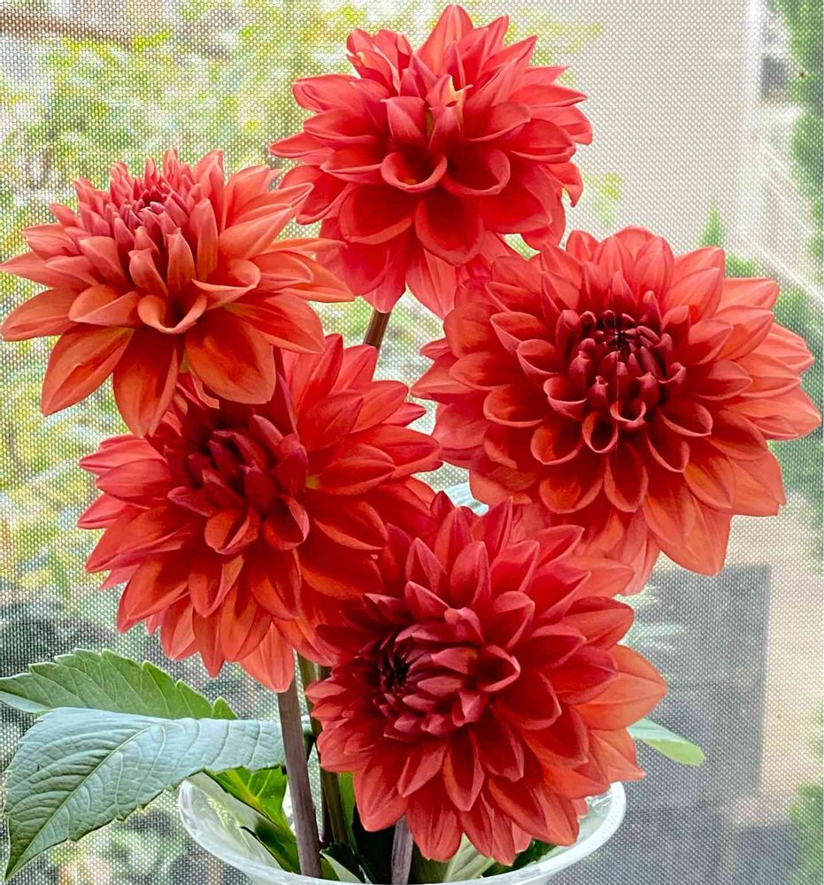 キッチンの出窓を、明るくしてくれるダリアの花💕🍀
