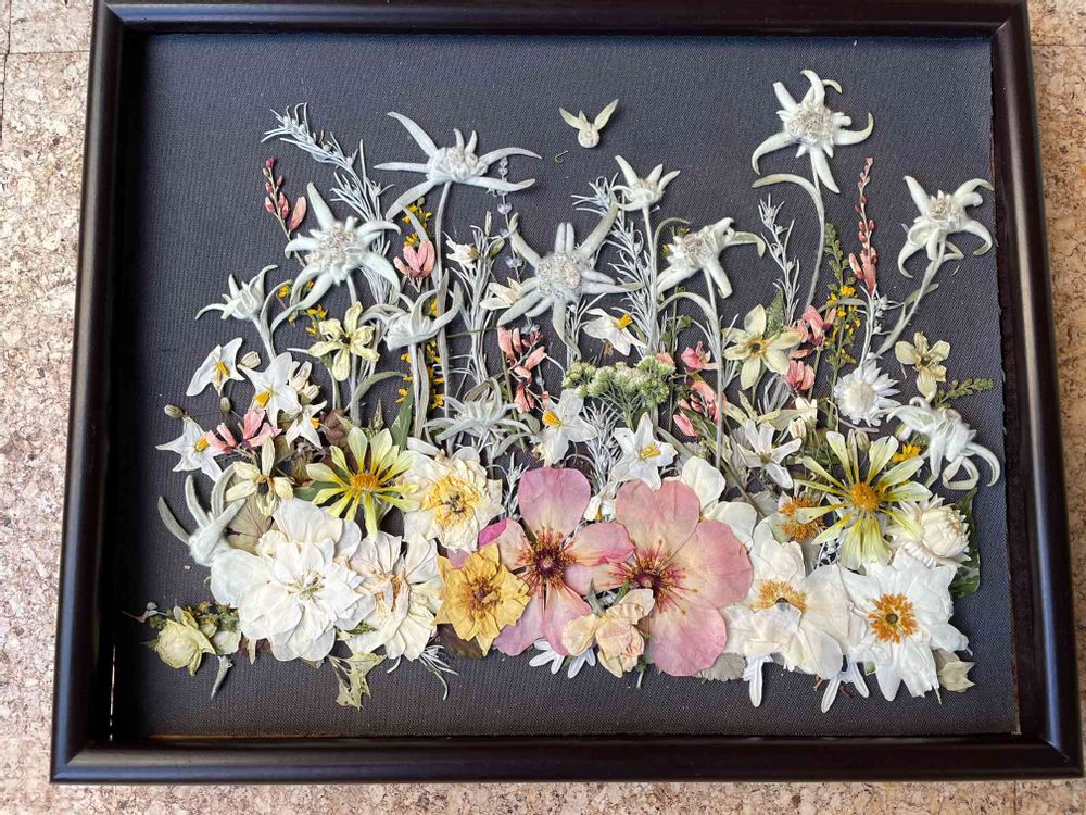 エーデルワイスの押し花額をつくりました。