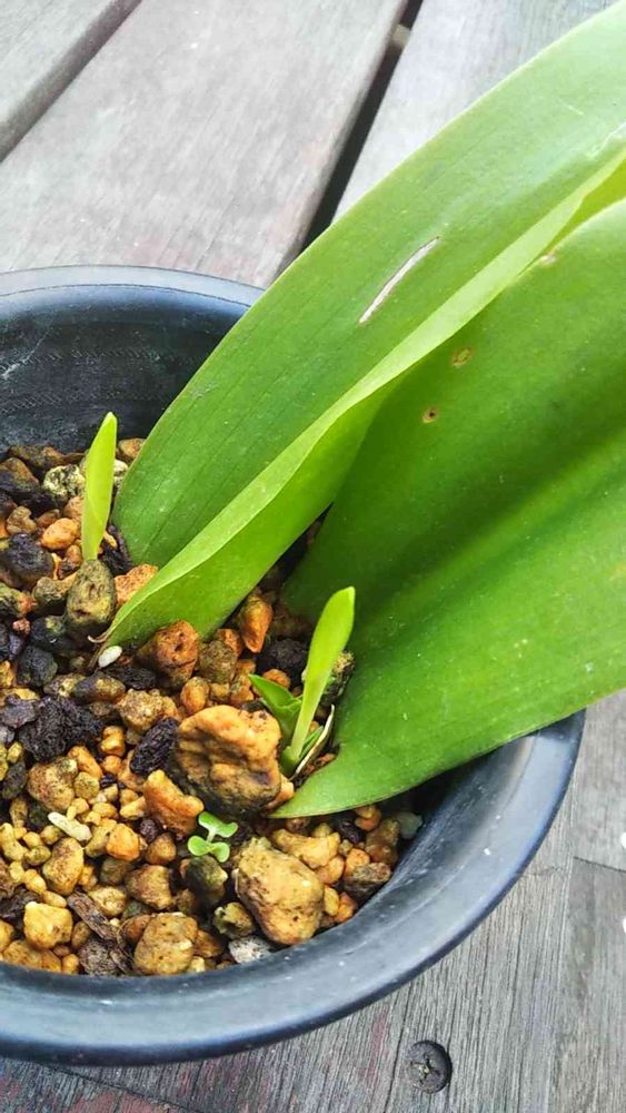 パイナップルリリーの葉挿しで、芽が出るなんて驚きました😅