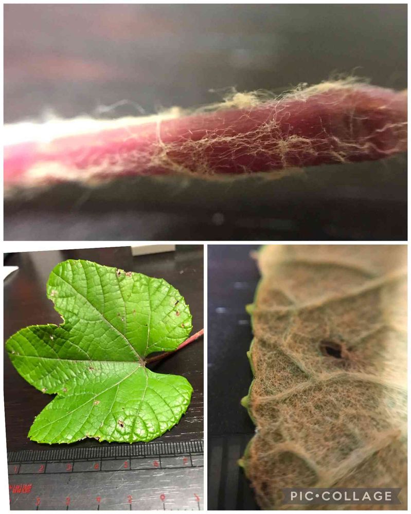 厚みを感じ 艶っと光沢もあって ヤマブドウのようなほど大きもなく、先っちょは尖ってなくて クモ毛も。