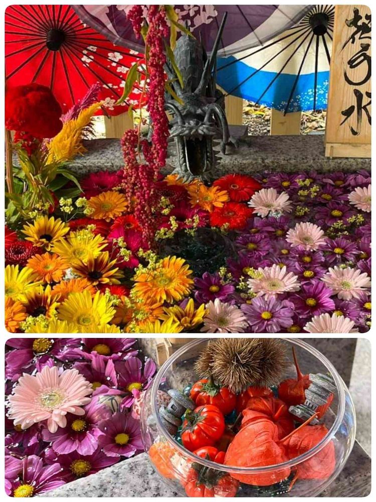 札幌の諏訪神社の花手水は秋バージョンに衣替え🍁💛