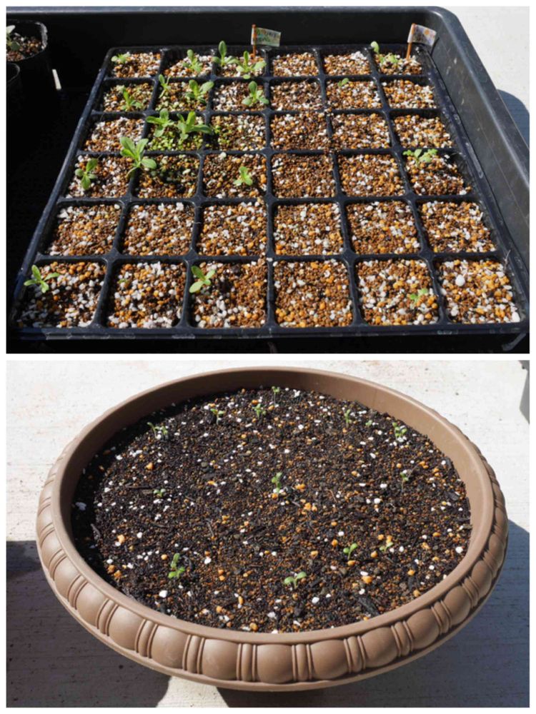 下)あまりにもネモフィラの発芽率が悪かったので、9/25にプランター直播したら今度はわりと高確率で発芽しました!