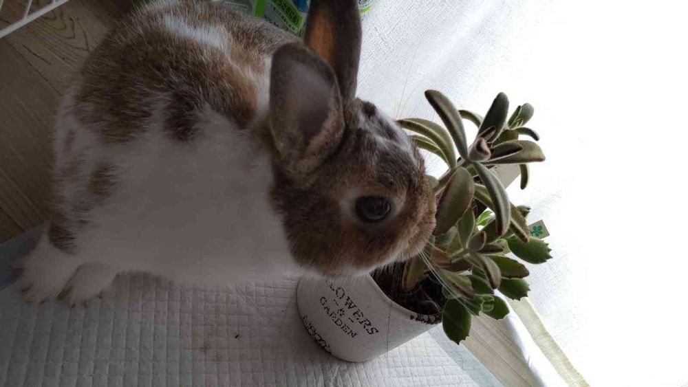 家のウサギのルカと黒兎耳&熊童子