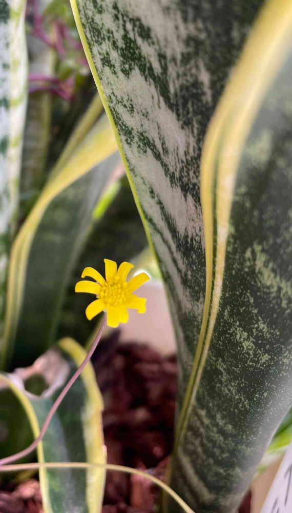 サンセベリアの間に咲くルビーネックレスの花🌼