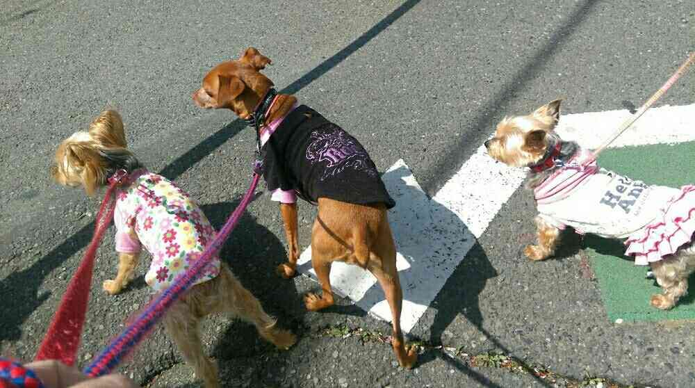 近道しようとすると 「手抜きは許しませんよ」とばかりに家と反対方向に引っ張られて 見知らぬ道へ。
