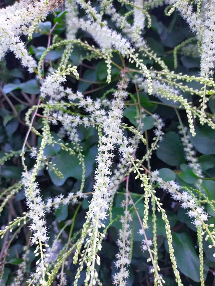 散歩道のお宅の生け垣に絡まってました。つぶつぶのお花が目について✨✨