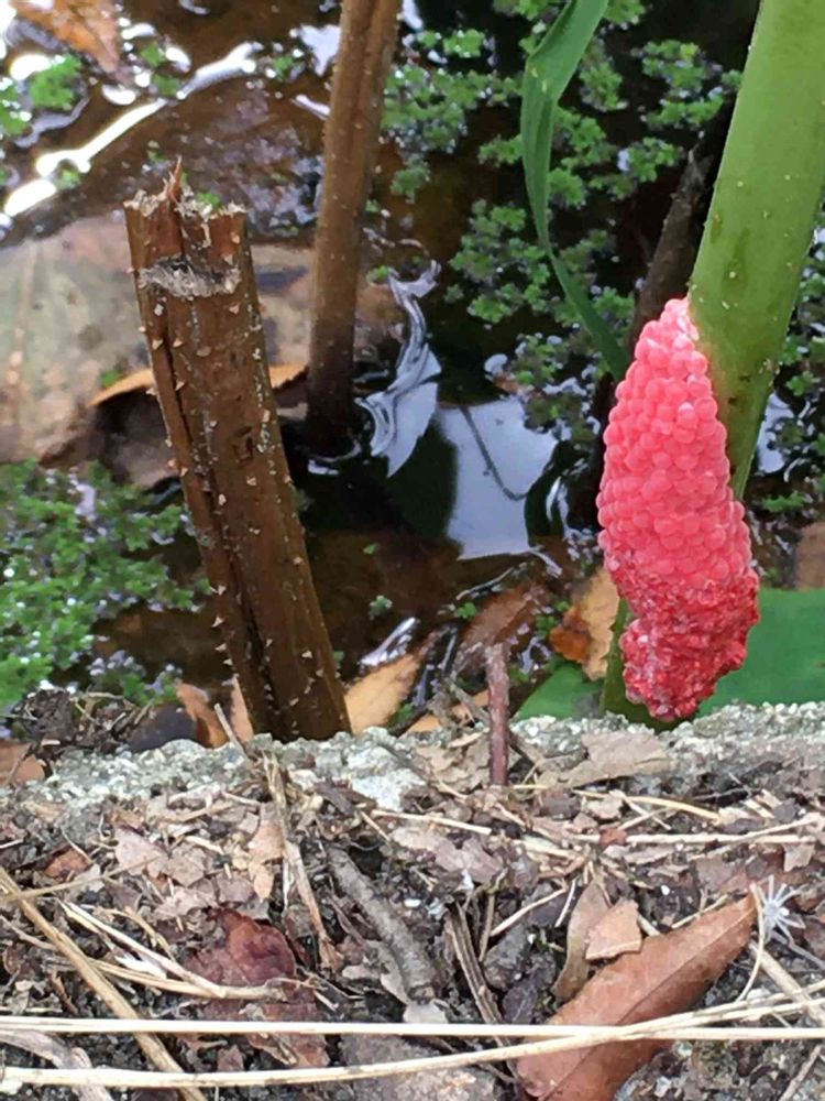 ジャンボタニシちゃんのたまご😂きもいですよね〜ドギツイ色ですよね〜