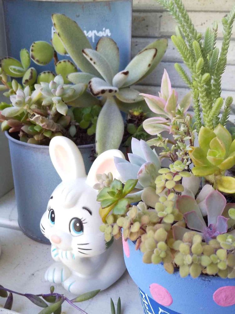 手前の多肉ちゃんがちょうどうさぎさんの耳飾りみたいでかわいいね❣️