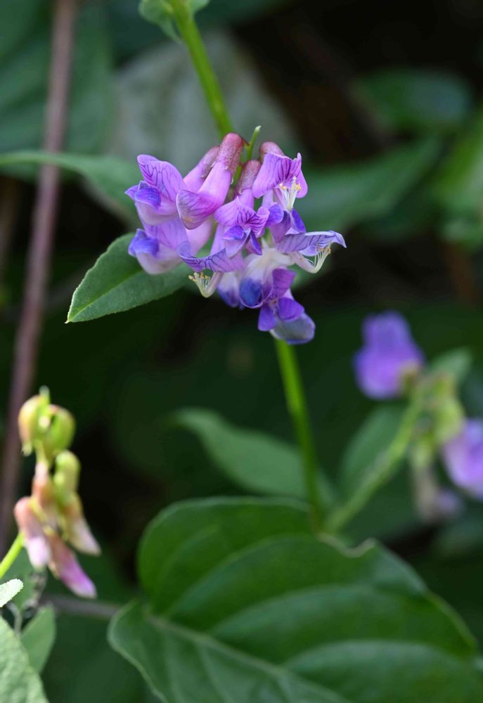 私の地元を走る鉄道の線路脇の草地でよく見かけていました。今日は線路からちょっと離れたところに咲いていたナンテンハギを撮影することができました。集まって咲く花が綺麗だと思います。(下に移っている大きな葉はヘクソカズラの葉です)