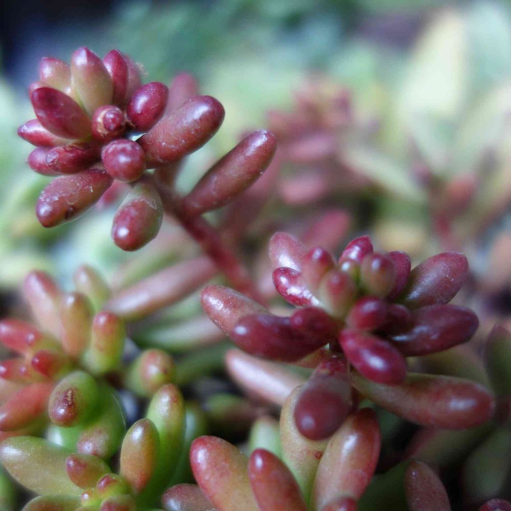 確かにセダムちゃん達の寄せ植えは鉢が大きいから、たまに向きを変えていて、ちょうど晴れた時に日の当たる方に虹の玉ちゃんがいたかも❗お日さまってスゴい(*゚д゚*)✨️