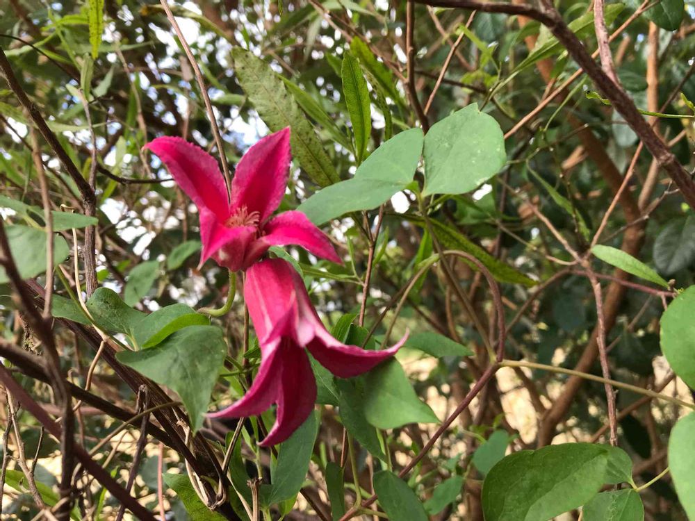 2枚目はクレマチスのプリンセスダイアナ🥀ポツポツですが、何度も咲いてくれます😊枯れ葉を取るくらいで剪定もしていないのに、優秀ですね🎶