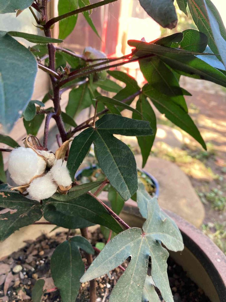 今年から育てている綿花子?から綿が取れました。花はオクラのような花が咲き、咲いているうちに2回色が変わります。来年はもっと咲いてくれたらいいな。