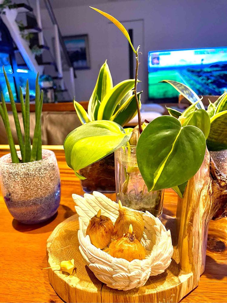サンスベリア,サフランの球根,アボカドの葉っぱの投稿画像