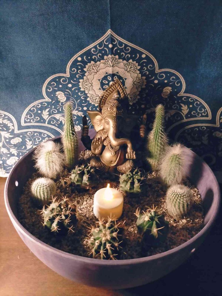 ガネーシャ🐘とサボテン🌵ピッタリですね😆 背景の布も合わせてて素敵な空間ですねー!