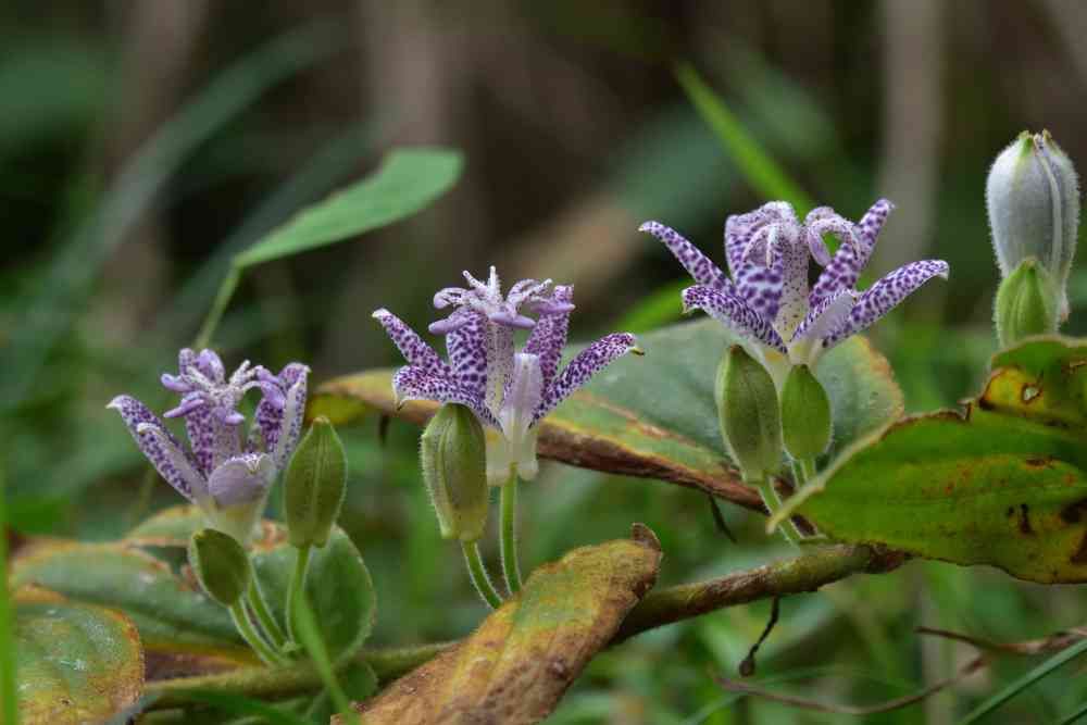 ホトトギス(杜鵑草)の花です。ユリ科なので百合の葉に似ています。ネット情報では開花時期は夏からのようですが、こちらは今からのようです。