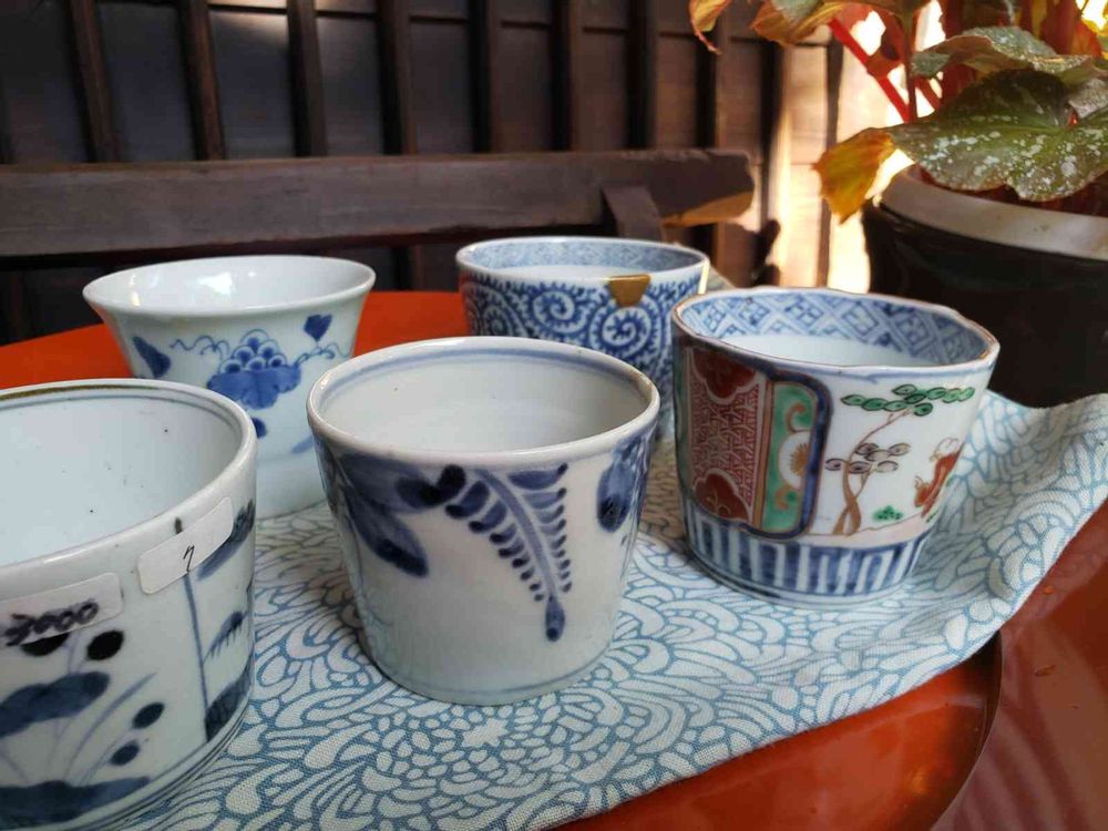 さんへ 骨董市通いが大好きでちょこちょこ集めました。普段使える手が届く器を購入。幾何学模様の蕎麦猪口や珍しい絵柄等が高価です。コメントm(__)m