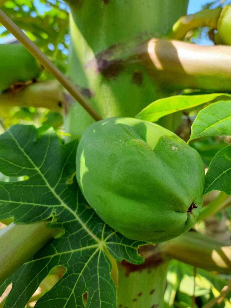 私のパパイヤは無事に育つと思わなかったので5本あり、葉っぱが重なり合って渋滞してます😅