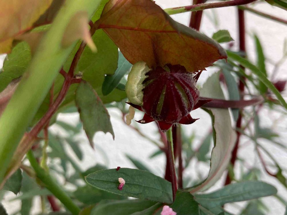 ローゼル最後の収穫。これは熟して中の種の実が見えてきています。