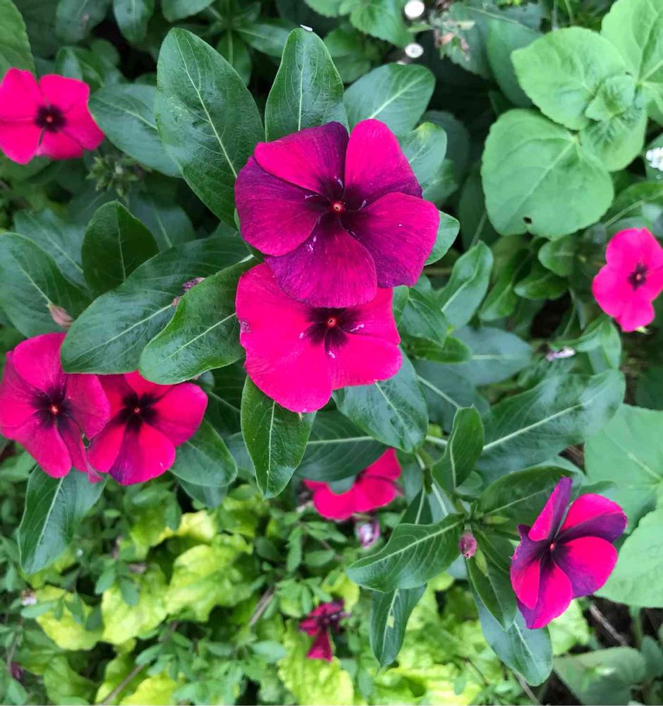 ビンカタトゥーを4種も育てていらっしゃるんですね✨ 私は丈夫そうな品種を種まきで作っているのですが流石に4種は無理ですが、風車のような面白い配色になる品種なんですね。