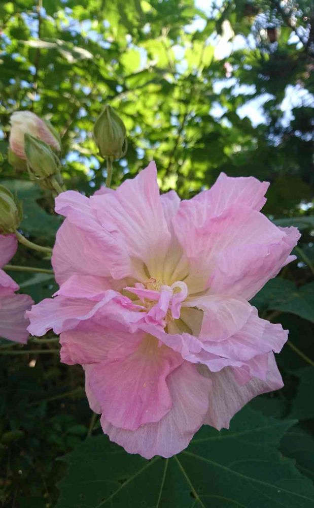 今 庭の3本の酔芙蓉が まさに花盛りで眺めては癒されてます👀♪