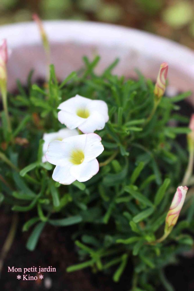 昨年ピンクのオキザリス「桃の輝き」を投稿した際、コメントをくださった方からバーシカラーという名の、蕾の時は赤、開花すると白い花が咲くオキザリスがあることを知り、そちらも育ててみたいと思っていたのです😌