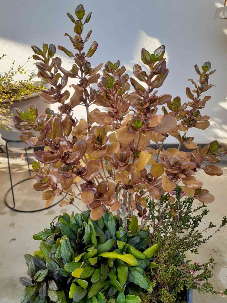 昨年寄せ植えにしたコプロスマコーヒー☕️秋になり、☕色になり始めてきました😃