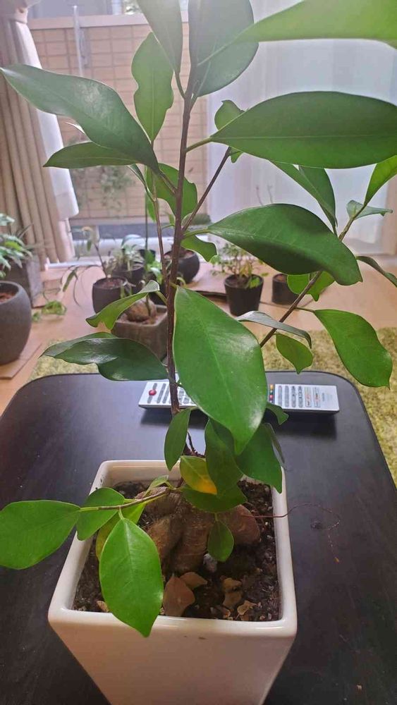 ウチのガジュマルくんは、まだ購入して間もなくて、手のひら弱の可愛い小さいガジュマルくんです。