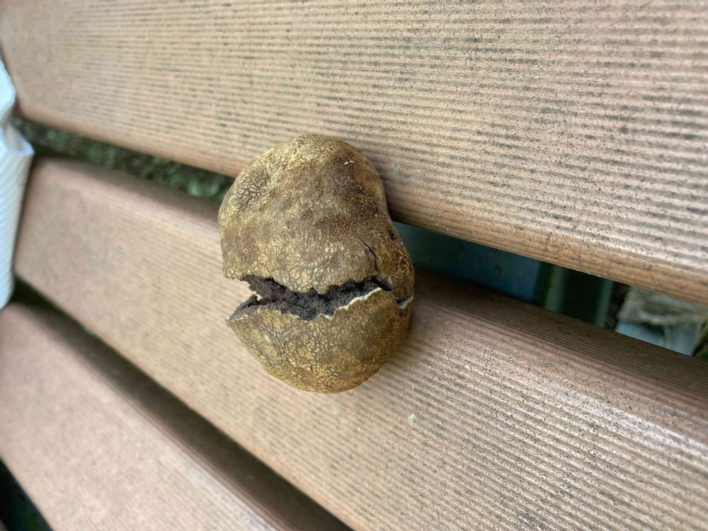 おまんじゅうみたいなきのこだと思われます… 柔らかいので、中を割ってみると、こしあんみたいなスポンジ状でした。