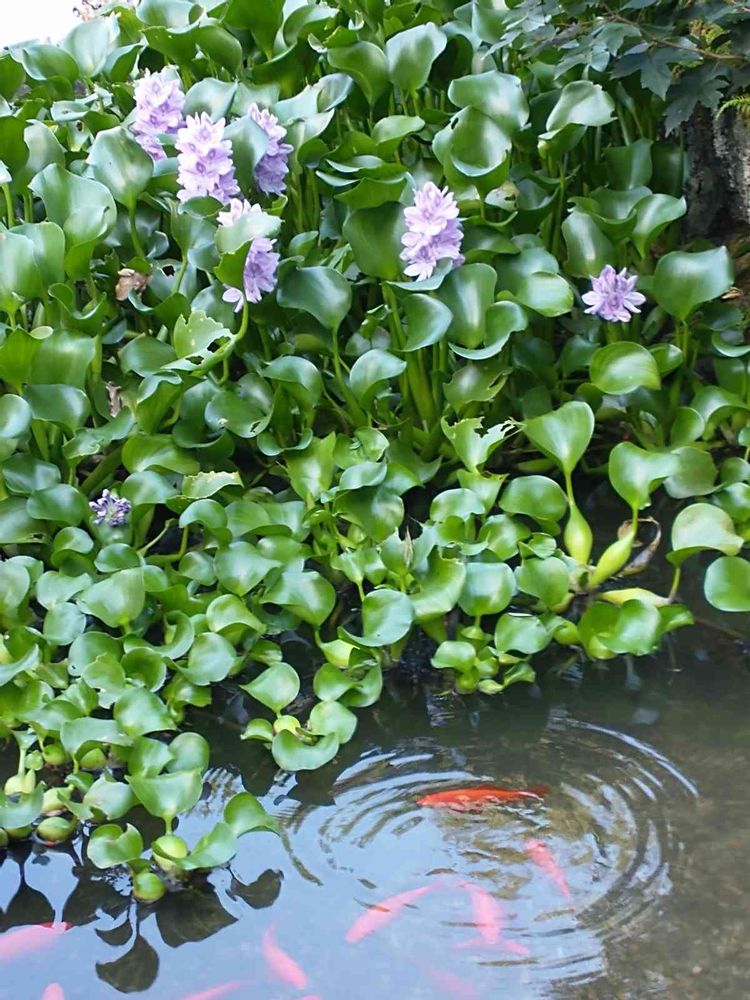 🏷️今日のお花 ホテイアオイ💙🌱と、きんぎよ・コイ?