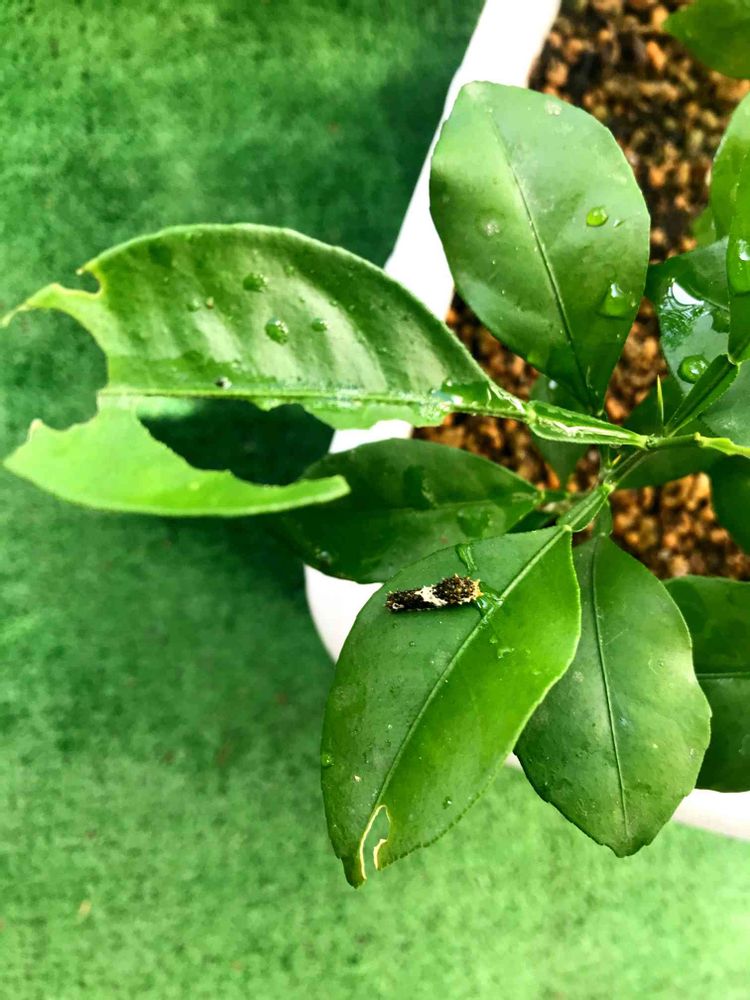 HIMIKOさん御早う御座います🎵この柑橘の葉っぱに沢山の幼虫が裏側に居ますよ食べつくしてやられますよどんどん幼虫が大きくなります のでご注意下さい。昨年は我が家でも同じ様に食べつくした幼虫が蝶に成って飛んでいました。なので今年は虫除けネットで囲って居ますよ👍