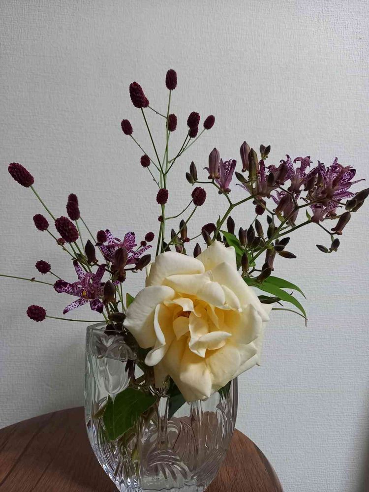 普段目立たないお花を活けて癒されましょう😊レディさんは一輪だけ咲いてて、雨にやられそうだったのでお仲間に😊💕