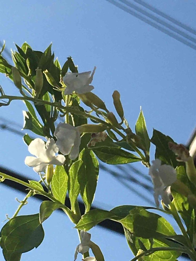 あまりにも空が綺麗だってので、我が家に咲いてるデュランタの白です✨✨✨
