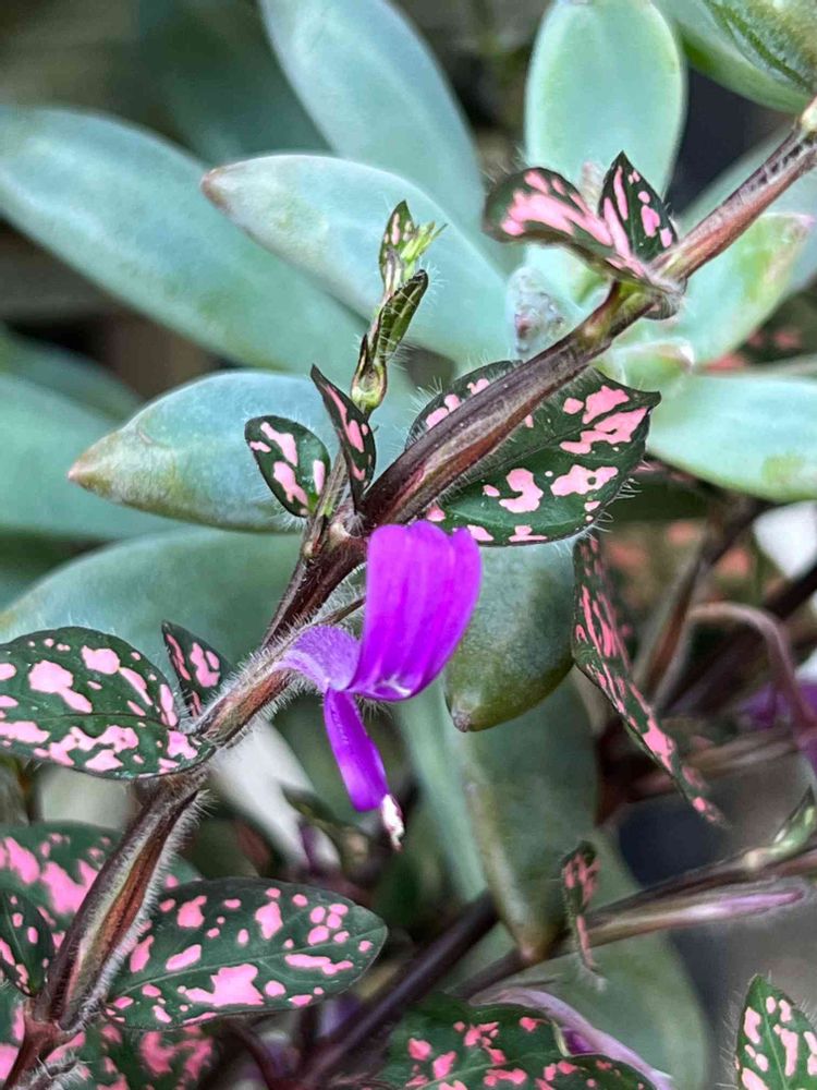 深緑とピンクの葉っぱに紫色のお花🥰🥰🥰