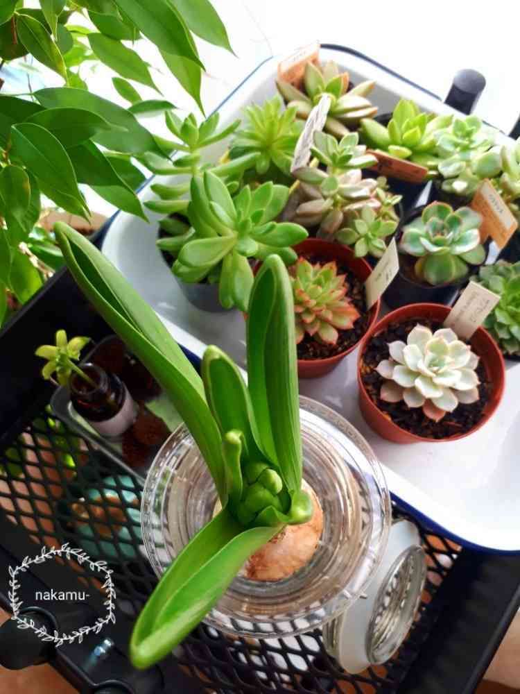 えへへへ。🌱😊🌱ヒヤシンスのお花が見えてきましたよ~。🌟