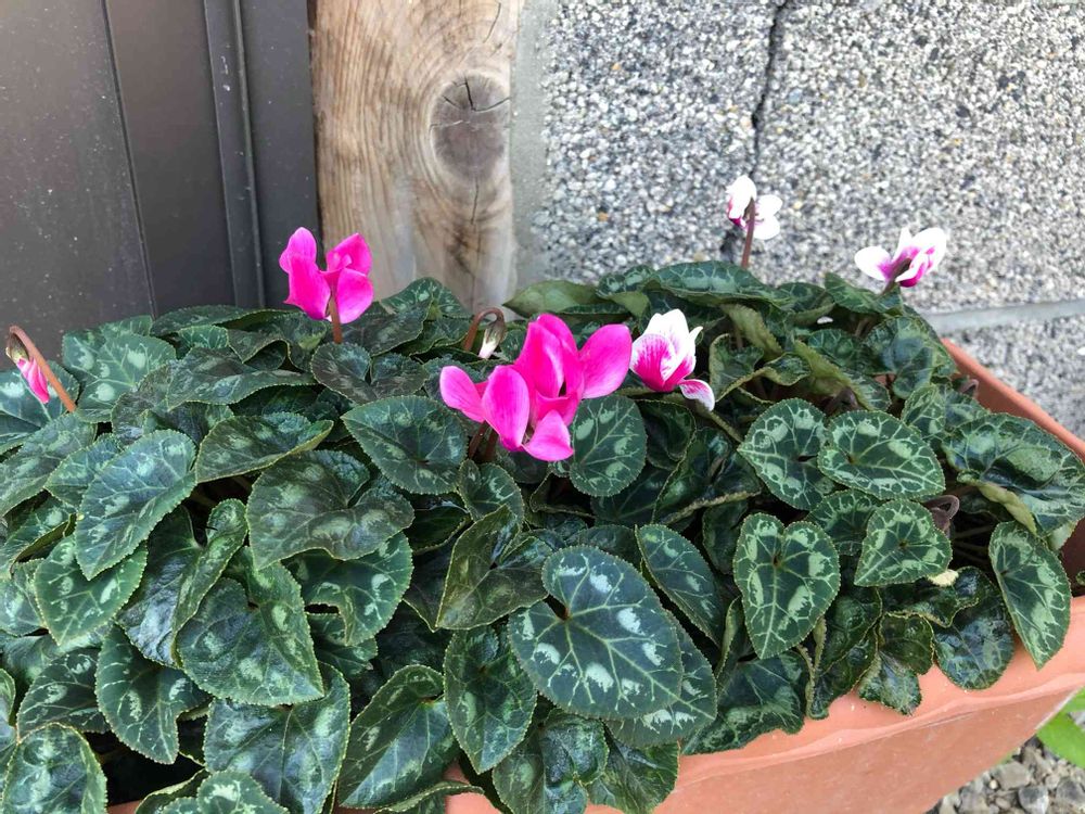 ガーデンシクラメン、うちのは季節感がなくなっちゃってるんですが、あちこちで見かけてシーズンに入ったな、と思ったので表で楽しむことにしました〜✨