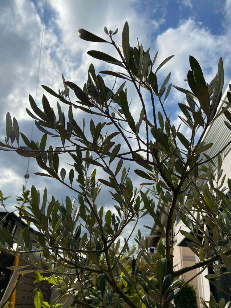 イキイキしたオリーブ🫒の木♬秋空に映えて格好いいです〜💕背丈はだいぶん大きいのかなぁ〜立派そう(⑅•ᴗ•⑅)◜..°