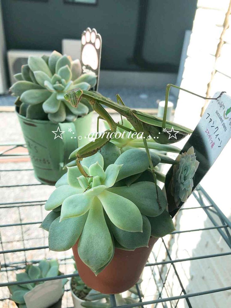 エケベリアの上にカメラ目線のカマキリが良いですね😊