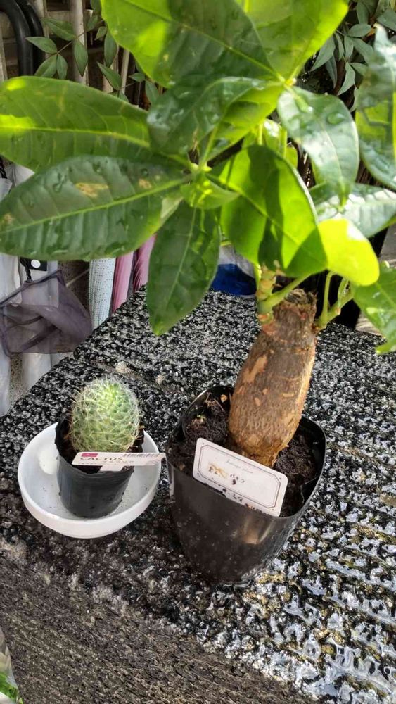 こんにちは😄観葉植物兄弟。パキラとサボテン🌵ある百円ショップのモノ。最近、仕事先で、良く買い物するショップ。手入れも、良いです。