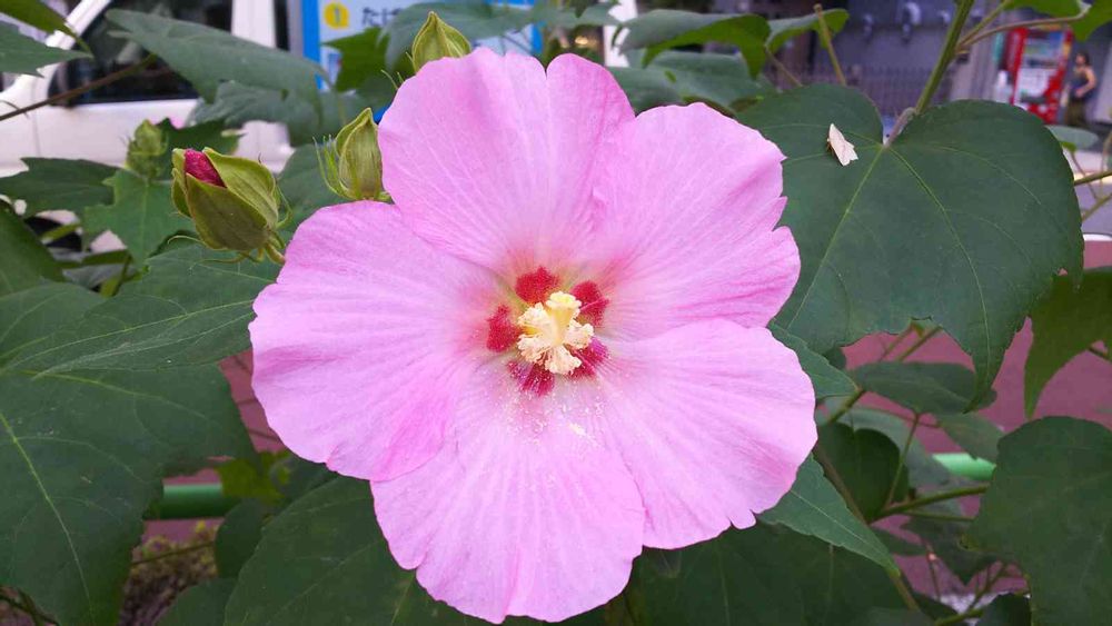 丸い大きな芙蓉の花が綺麗に咲いていました。