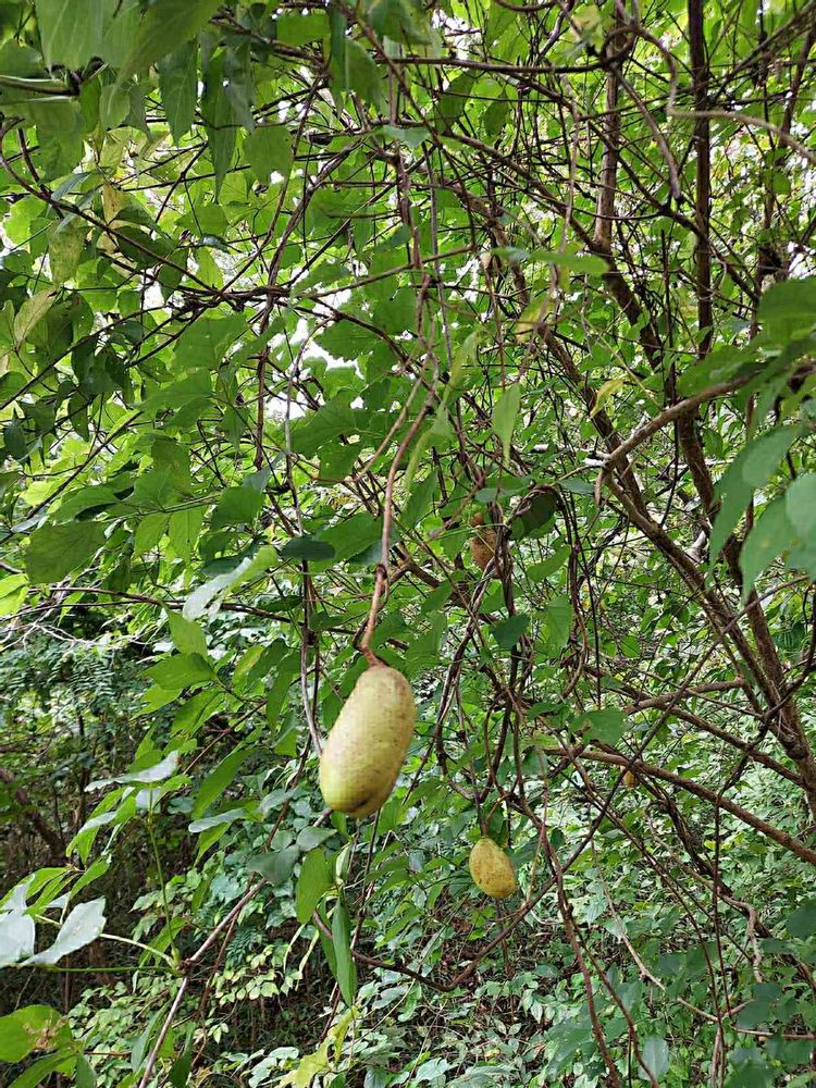 まだ紫にはなっていませんが、自然園を散策中に見つけた「みつばあけび」。
