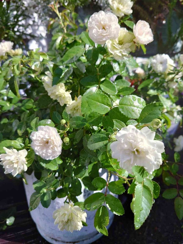 8時前に水遣り後🌹キラキラ光る✨