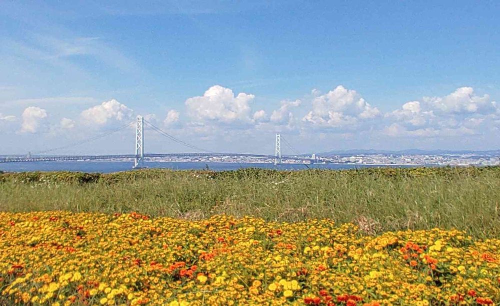 淡路島から…明石海峡大橋、瀬戸内海を望む風景